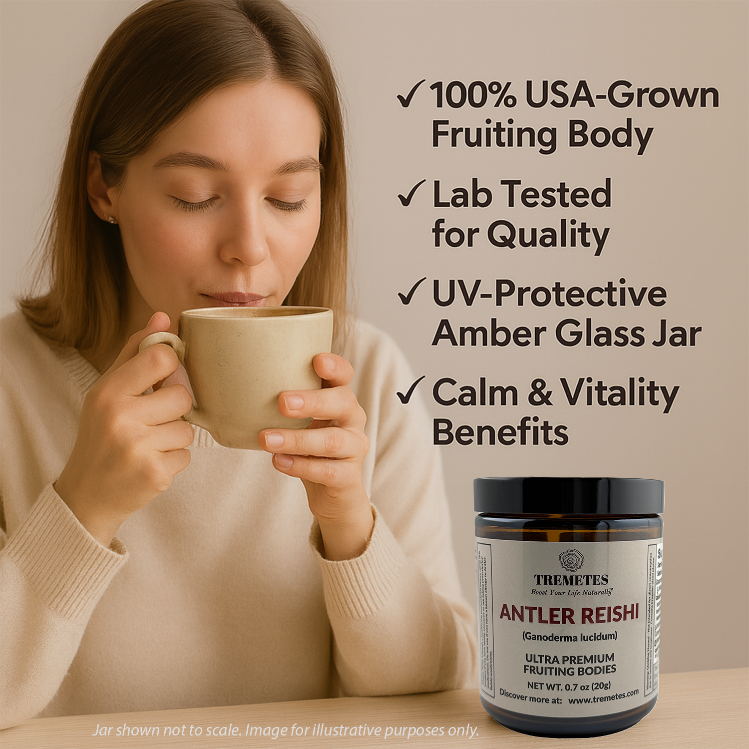 Tremetes Antler Reishi Fruiting Body | 37.8% Beta-Glucans (Lab Verified) | No Extracts, No Fillers, No Additives | Encourages Calm, Vitality & Enduring Well-Being
